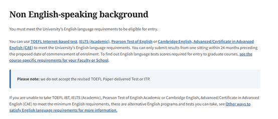 新南威尔士大学学院自9月1日起,不再认可使用 IELTS Indicator、TOEFL iBT Special Home Edition、PTE Academic Online 和 Duolingo 递交新的申请。