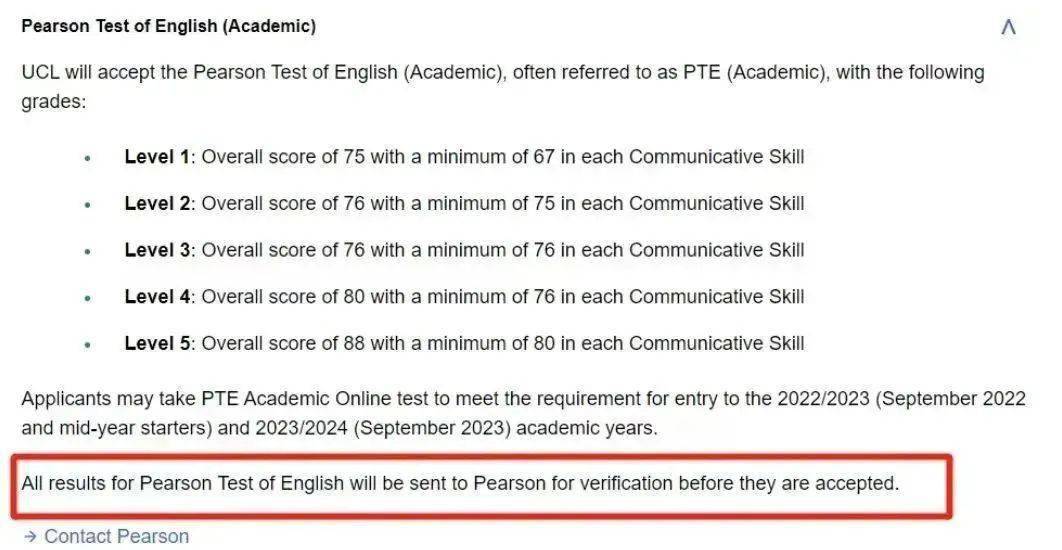 UCL在官网的语言要求中也已明确表示,用PTE申请的同学,提交的成绩将 在PTE官方再次审核之后才能作数!