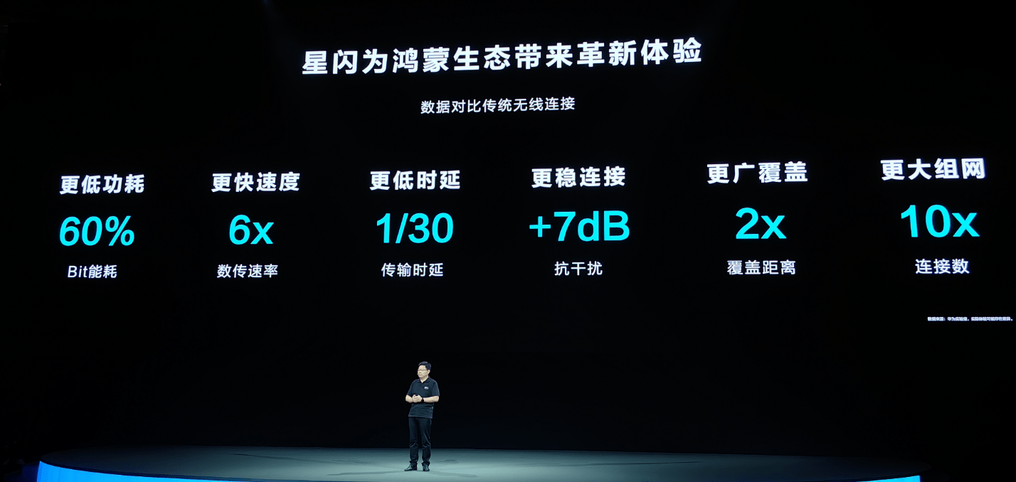 这也应该是余承东在今年华为开发者大会上用“遥遥领先”与“更高效的连接”重点推荐星闪,并将其称作“为鸿蒙万物互联提供强大连接能力”的重要原因。