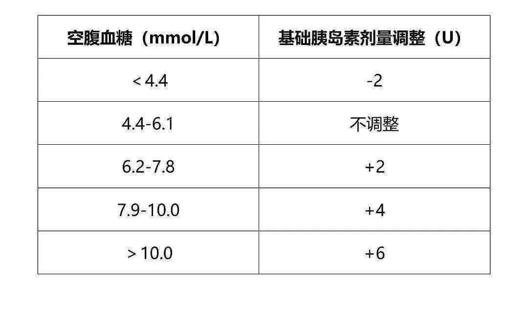 基础胰岛素,比如甘精胰岛素,可在全天固定一时间注射,多为睡前或者晨起,根据晨起空腹血糖调整剂量,在没有出现晨起背心汗湿、发缝汗湿等夜间可疑低血糖情况下,可2-6单位胰岛素剂量增减,以期更好降糖效果。