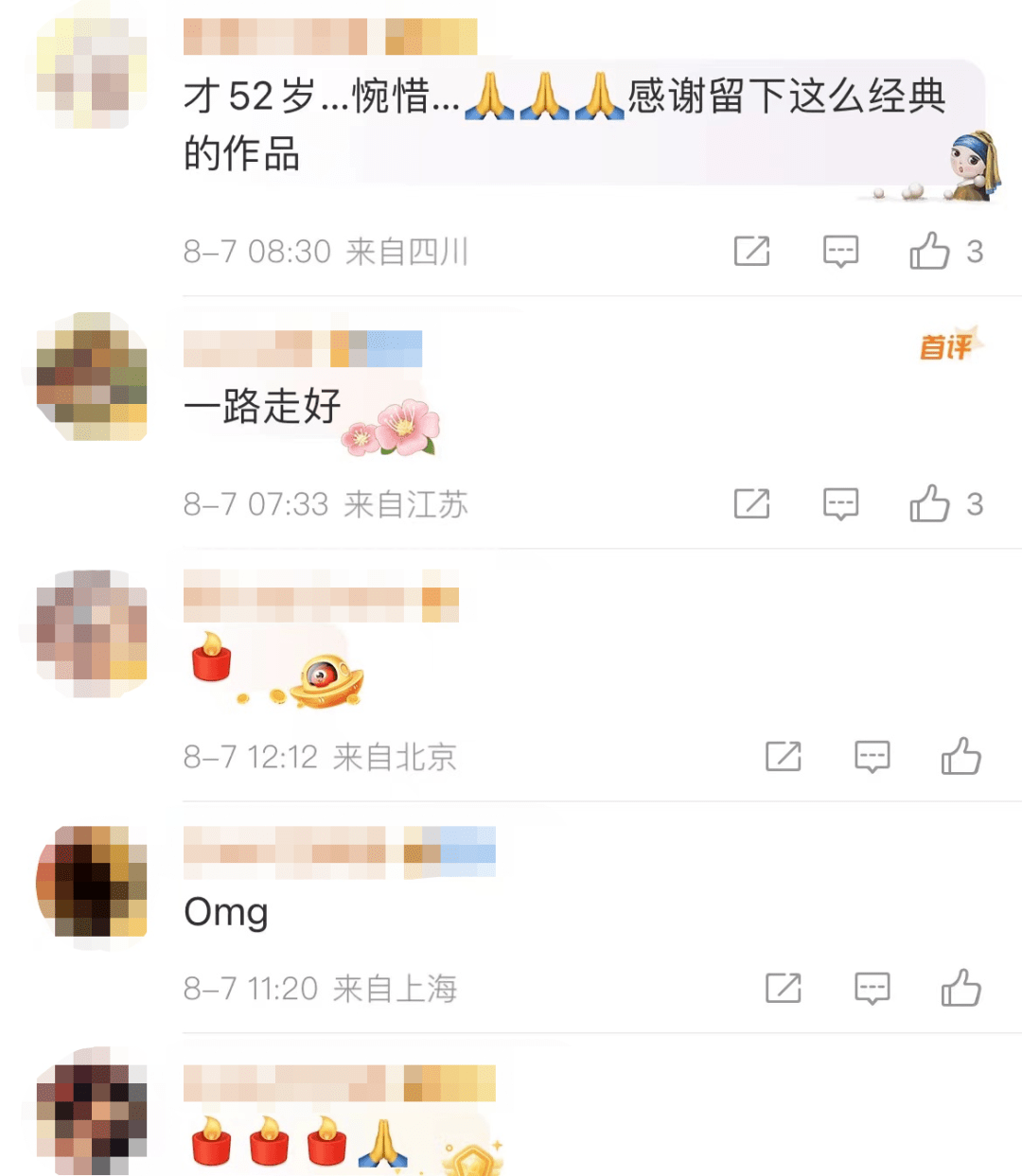 听到陈匡荣去世的消息后,网友纷纷悼念:“一路走好”“才52岁,太年轻了”“感谢留下这么多经典的作品”。