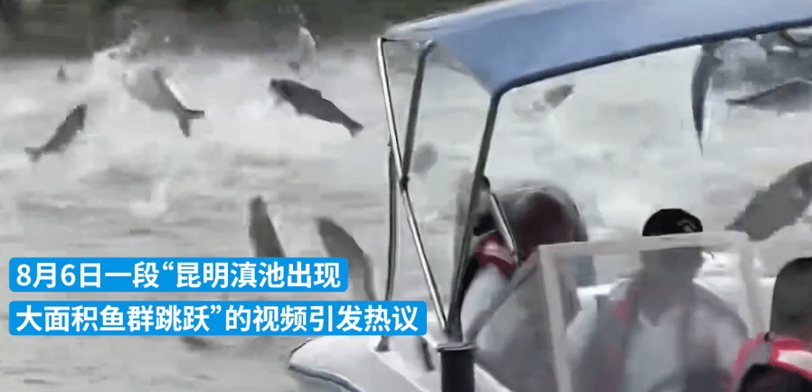 事发于8月6日的云南昆明滇池,当日,有观光快艇在滇池行驶,突然看到鱼群持续跳出水面,有游客将其记录下来发布到网上。后来有记者去采访了现场一名维持船只秩序的工作人员,工作人员表示当天出现鱼群跳跃的区域可不止一处。