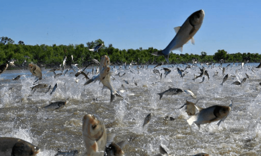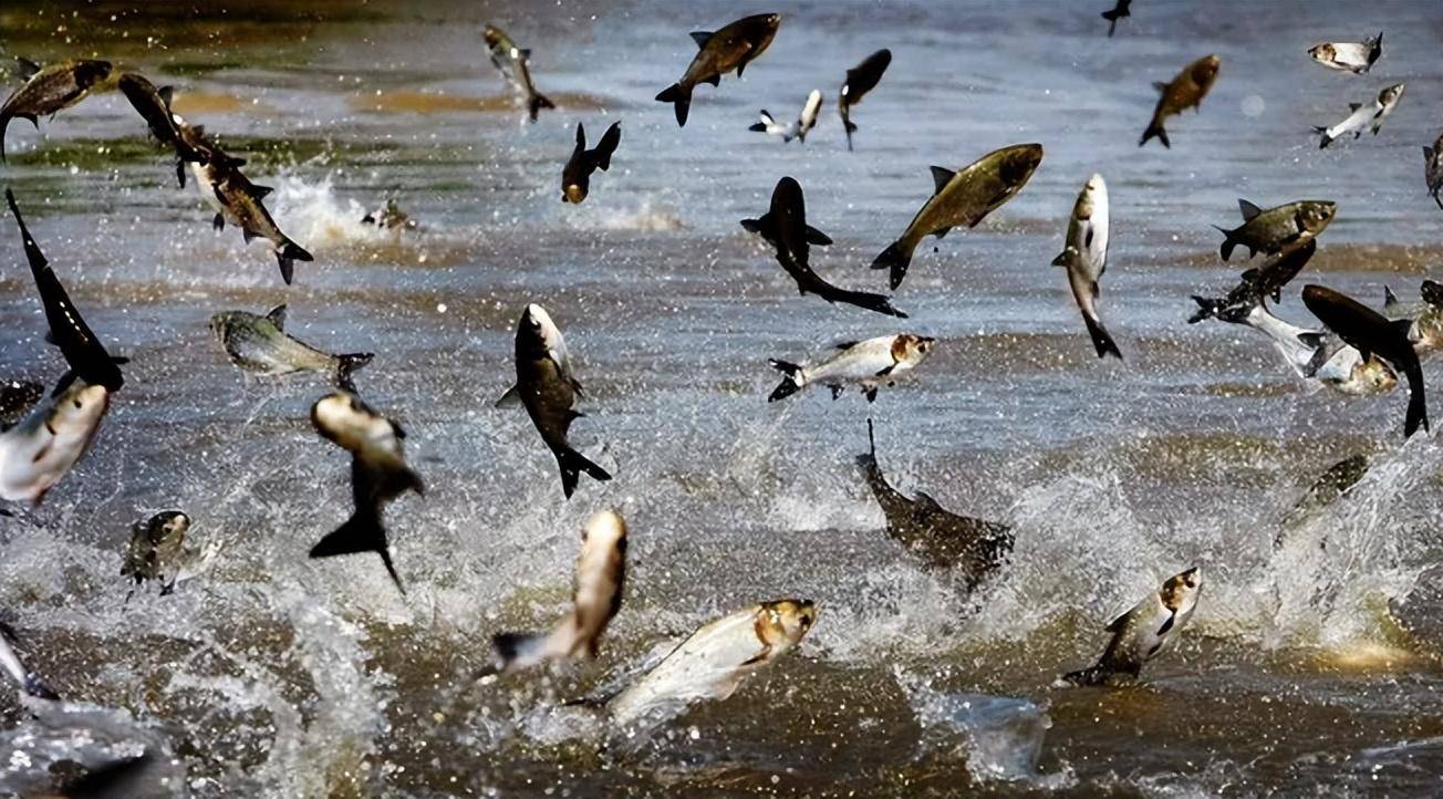 3.受到了惊吓。比如亚洲鲤鱼,它们受到惊吓就会集体跳跃。作为入侵物种的它们如果出现了集体跃水的行为,那对河上划船的人类来说是相当危险的,美国就曾有一名妇女被跃起的鲤鱼划破脖子。
