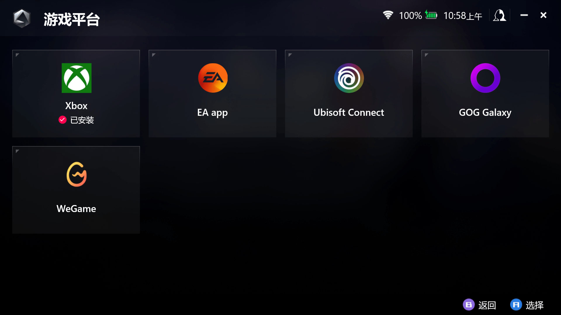 打开游戏库,你会发现ROG掌机上现有的游戏平台和游戏均已自动被整合进这个页面中,对其他平台有需求的玩家,也可以自行前往其他-游戏平台里面添加。