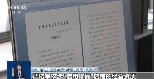 广州白云区人民法院执行局法官 刘静:主要就立即整改下架“限高订票”商铺,严格审核涉“信用修复”店铺的经营资质,屏蔽违规关键词,严格审核清理违规广告,加大常态化巡查监控力度等五个方面给出了具体的建议。