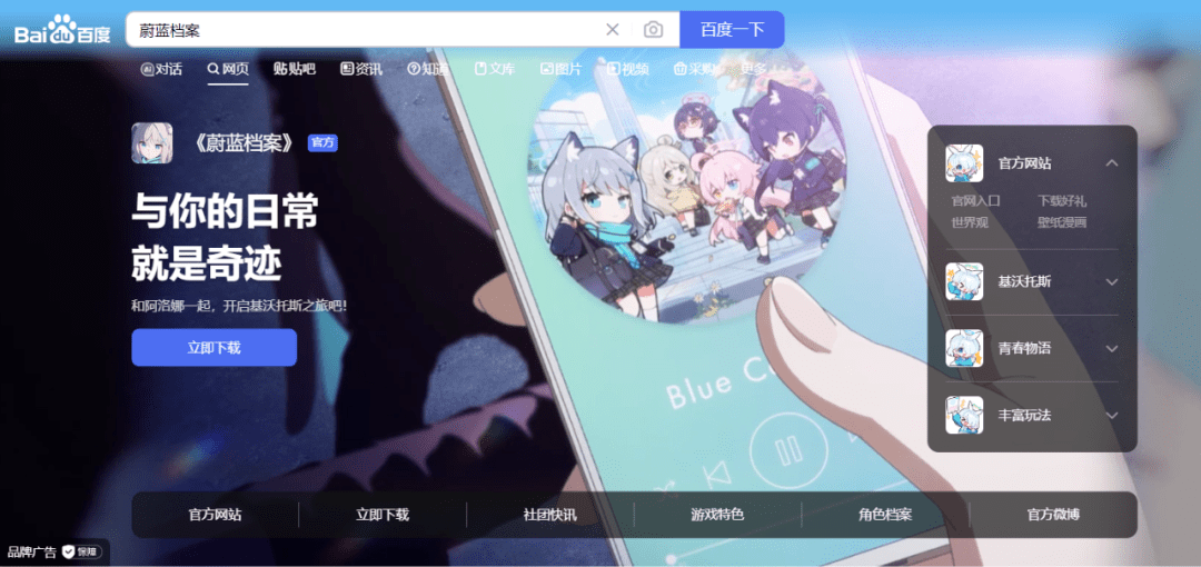 另外,《蔚蓝档案》投入了不少品牌广告进行造势,例如百度搜索主页、B站腾讯QQ等开屏广告等,加上投放了不少图片素材,所以整体投放量数据并不突出。
