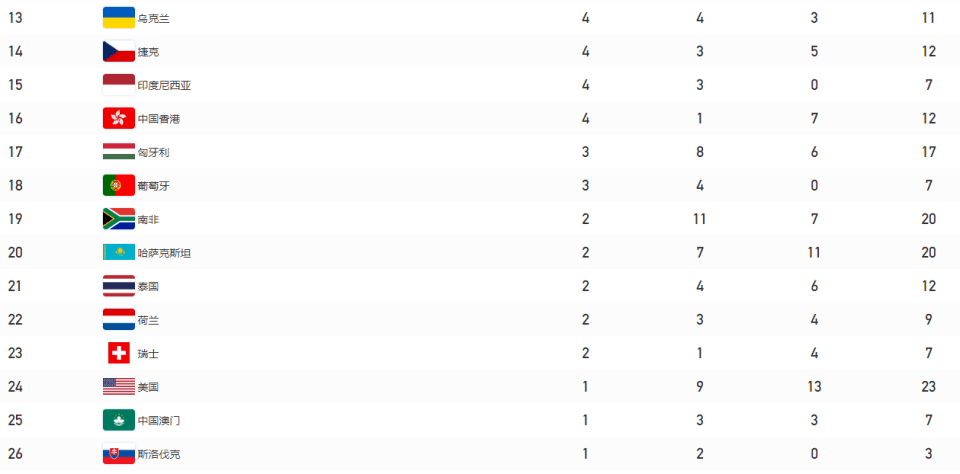 不过,考虑到对手派出选手实力的原因,夺得这样的成绩也就不足为奇。美国代表团非常拉胯,反倒是过往一直拉胯的印度代表团,在本次大运会有不错表现,他们以11金5银10铜,排在了金牌榜和奖牌榜的第7位。