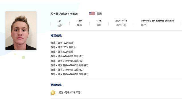 决赛中,杰克逊-基顿游出了1分57秒66的成绩,力压日本和韩国选手夺得这枚金牌。而这枚金牌,也让美国代表团在本届大运会的金牌数突破零的纪录。