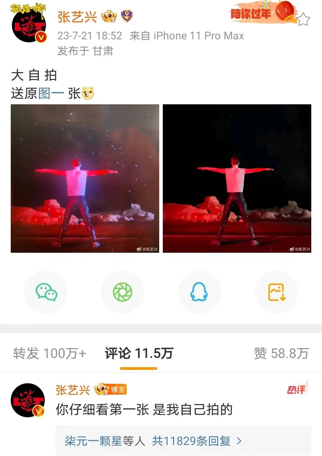 最近开启“大航海”巡演的张艺兴在微博给网友晒出大自拍,还附赠原图,点开一看,好家伙,是张艺兴摆出“大字”,是张艺兴拿手机对着屏幕拍,这操作实属会玩儿!