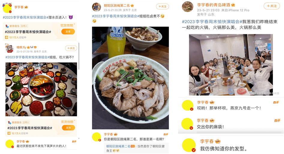 像普通人一样追星、追演唱会、紧跟社会热点,也带动了网友对于趣味话题的讨论与共鸣,掀起全民共玩的氛围。