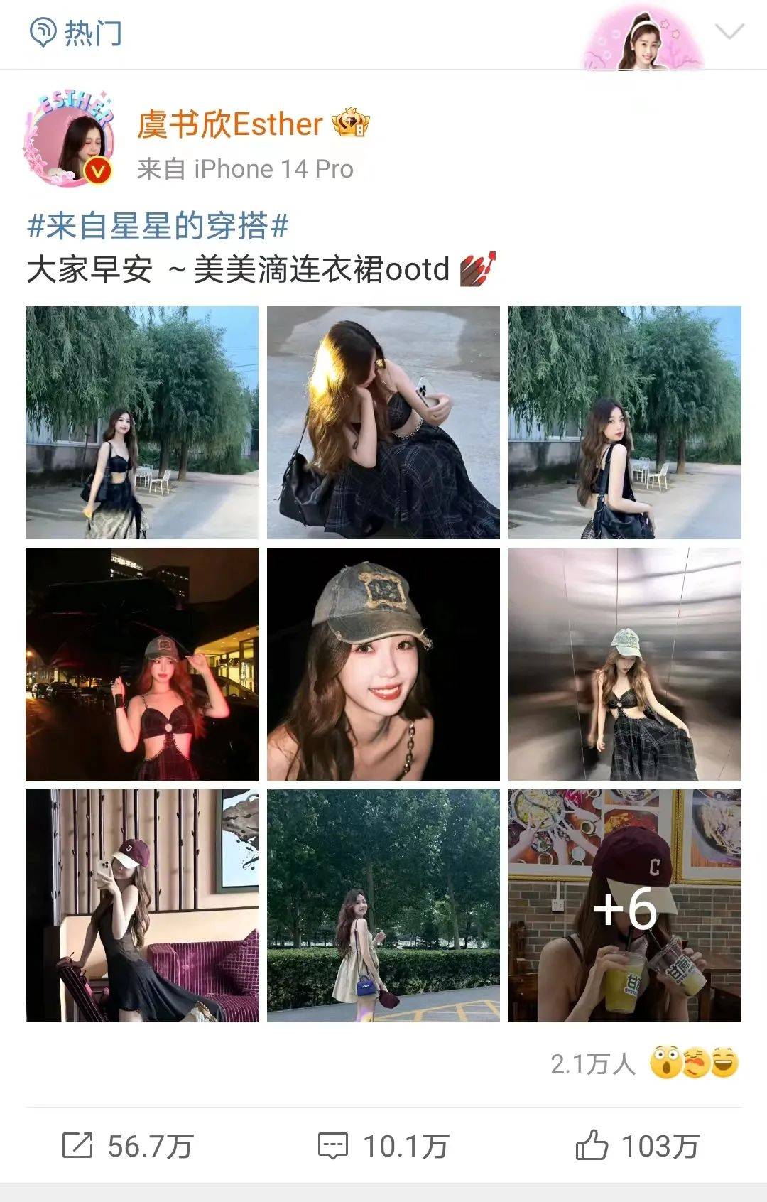 经常在微博发穿搭ootd的虞书欣简直是分享狂魔,买到好看的裙子鞋子,海上钓鱼,喝了三杯冰美式,网友隔着屏幕都能感受到欣欣子的小确幸。