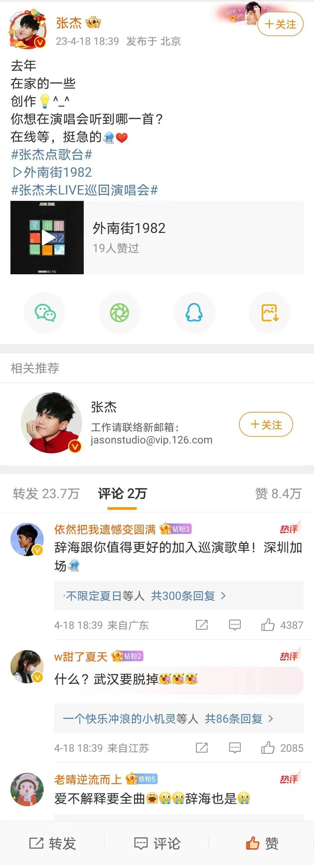 张杰在微博开设了#张杰点歌台#,问大家想在巡演中听什么歌“在线等,挺急的”。武汉站杰哥演唱了歌迷许愿的《辞海》,对于现场歌迷调侃他记不住词,第二天张杰就在微博放出《竹》的清唱版,“谁说我记不住词!”