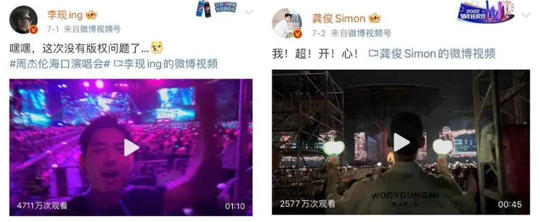 比如周杰伦演唱会在微博刷屏,就得益于内娱杰迷团建:前有王俊凯晒周杰伦演唱会随拍,后有“海口三子”大闹周杰伦演唱会,李现把杰伦to签穿在身上,龚俊与周董合唱《发如雪》,没有技巧全是感情!