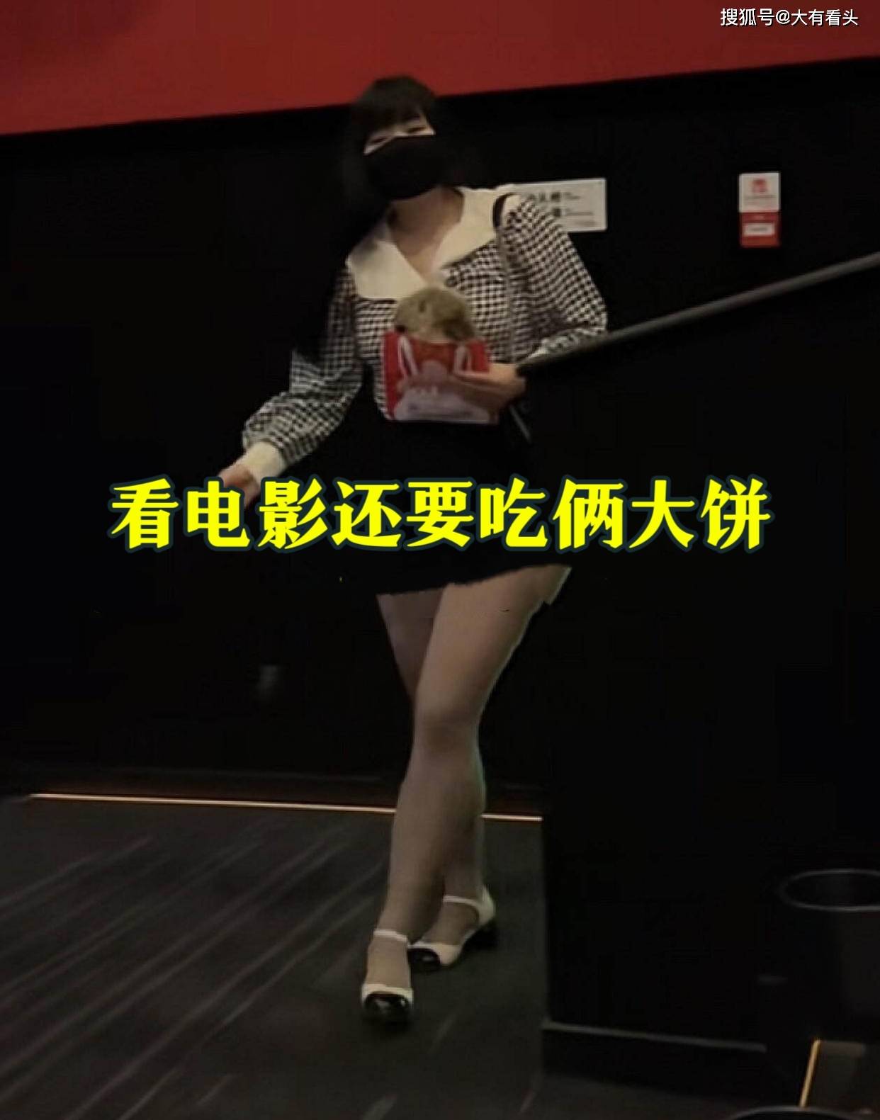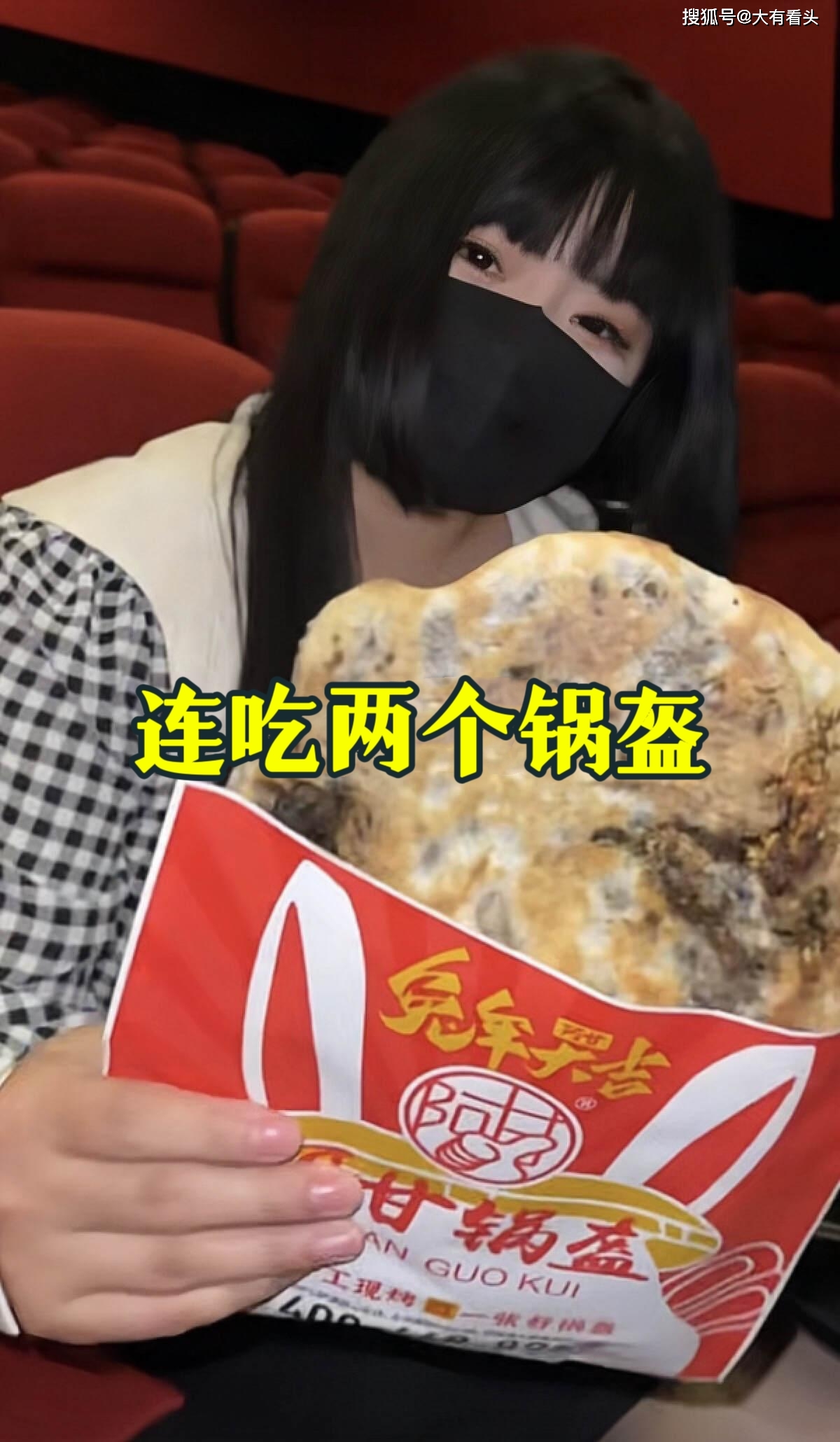 后来男子带着女子去看电影,女子竟然又买了一个锅盔,表示自己还有点饿,需要再吃一个锅盔