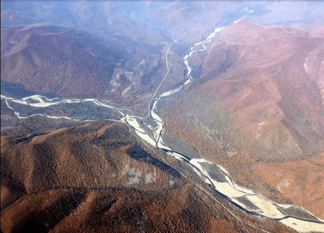 这里曾经有一个渔鸮的巢,但是在暴风雨期间,河流决堤,锯断了森林....当水退去时,它在山谷中留下了一道伤疤,在过去是杨树和松树生长的地方,留下了一条宽阔的砾石和石头。图片提供:乔纳森·斯拉特。