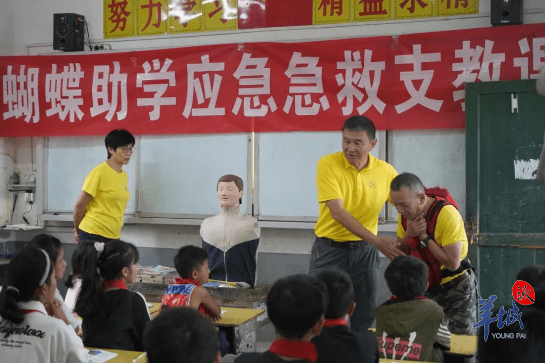 2022年9月,蝴蝶助学“应急安全支教”工作组带着自编的《蝴蝶助学应急安全小宝典》(下简称《宝典》),为贵州山区中小学教师和学生带去了应急安全演练与急救知识支教课。