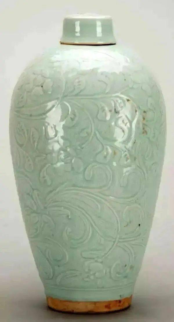 南宋景德镇窑青白釉刻划缠枝花卉纹大瓷梅瓶