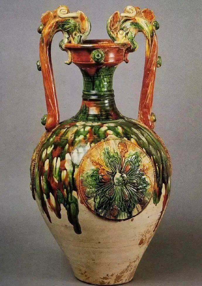 唐三彩龙耳瓶