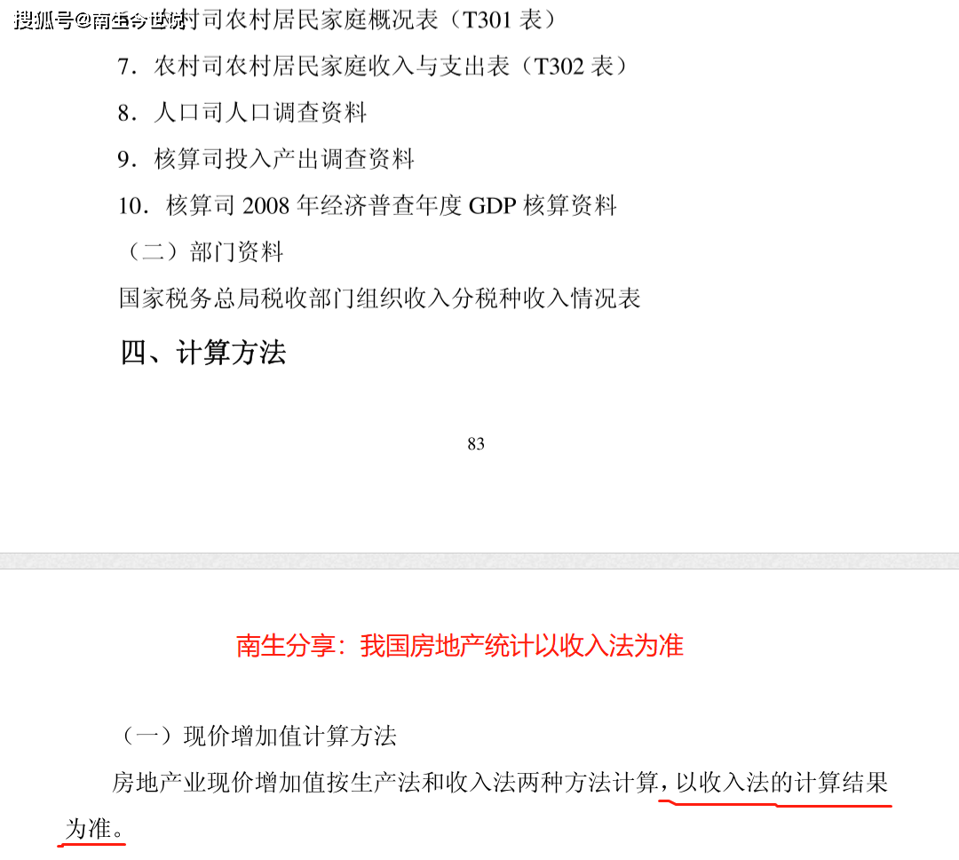 《我国非普查年份GDP核算方案》报告中明确提到:房地产行业的“现价增加值”——也就是行业GDP是按“生产法、收入法”两种统计方式共同完成的,但要以收入法统计出来的结果为准。
