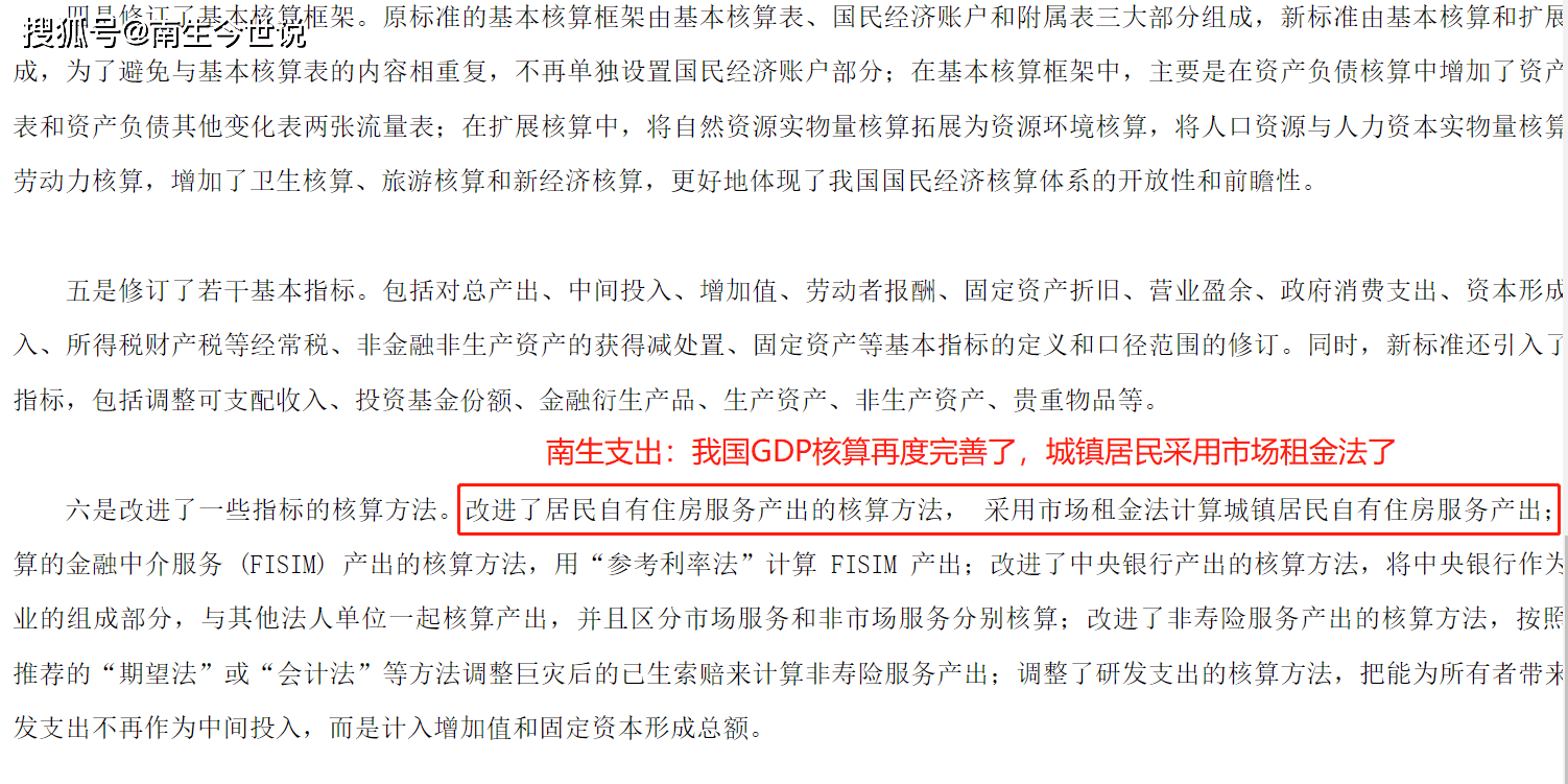 此外,还将城镇居民的自有住房服务产出改用“市场租金法”(如上图),而不是之前的成本法了,但没有提到农村居民自有住房——换言之,农村居民还是使用成本法来核算自有住房的虚拟租金。