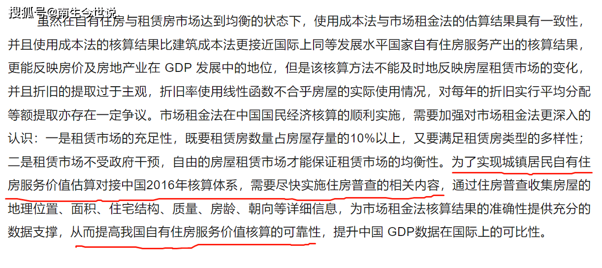 他们认为,只有尽快实施住房普查,获得全国范围内房屋的地理位置、面积、住宅结构、质量、房龄、朝向等详细信息后,才能真正让我国居民自有住房服务的“市场租金法核算结果”达到精准。