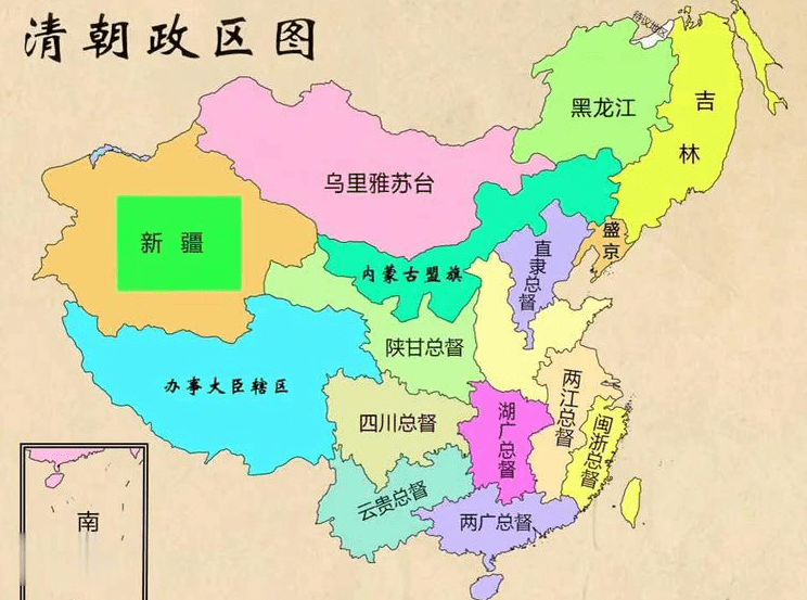 同时,由于各方面的实际原因,清朝在东北、西北和内蒙古等地,并没有组建行省。清朝在各地设立了各个辖地将军,例如东北地区的黑龙江将军、吉林将军、盛京将军。在内蒙古各地,设立了各个镇守将军。由于没有各级区划和各级官员,清朝对东北、内蒙古等地的管理非常松散。对于各地的人口、耕地等各方面情况,清朝并不完全掌握。
