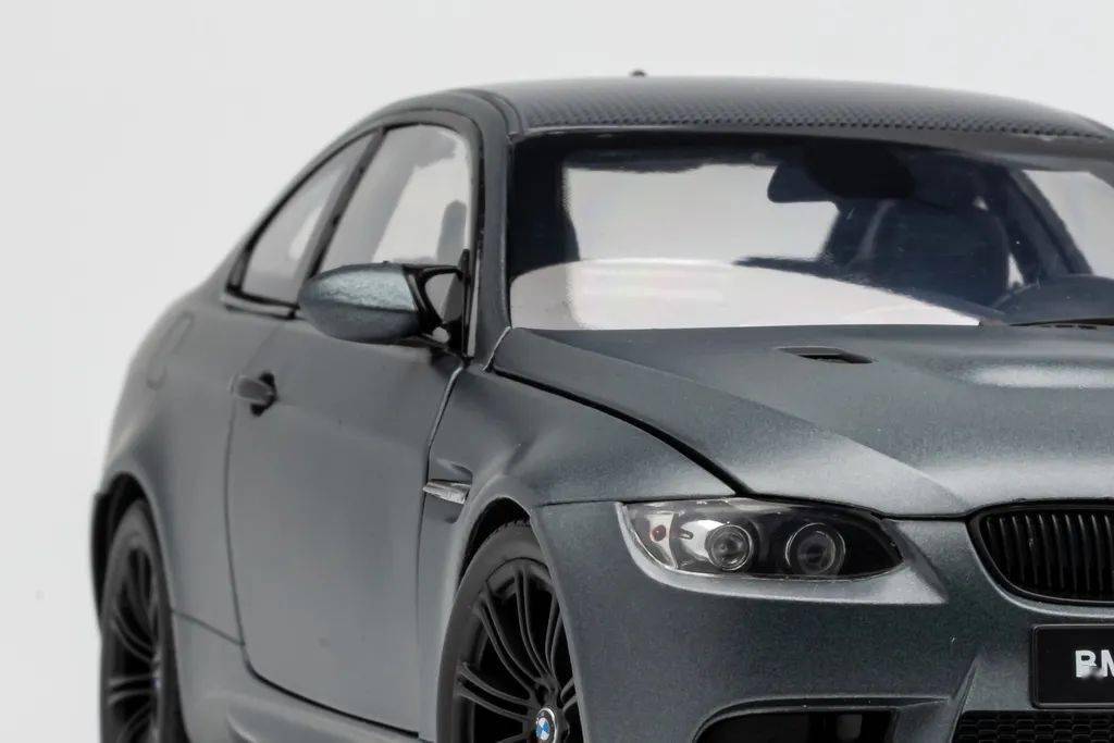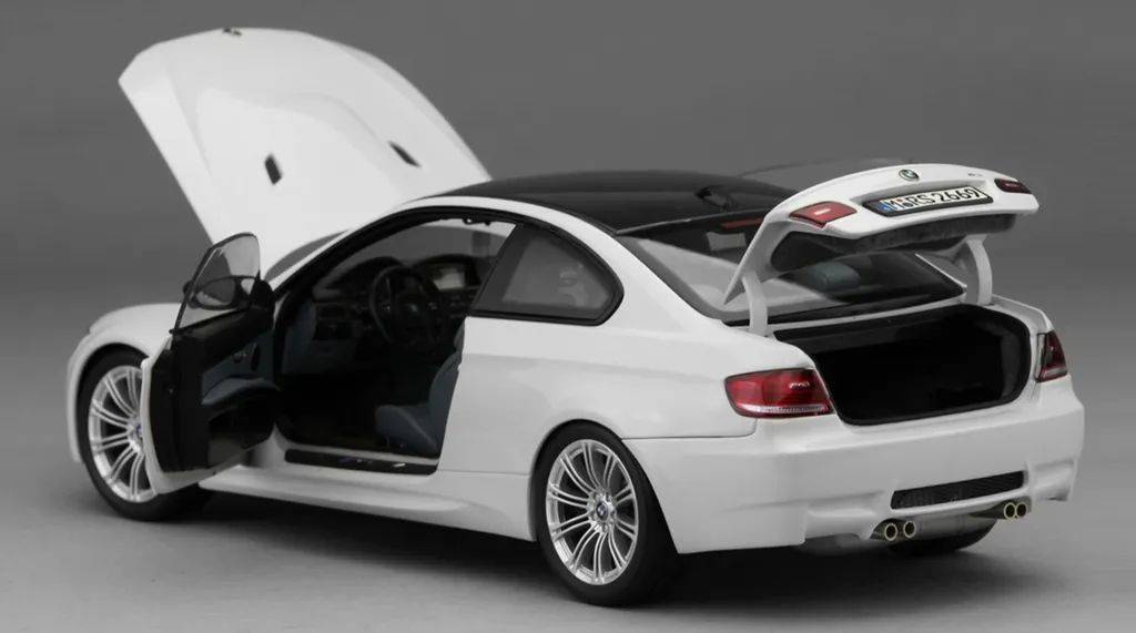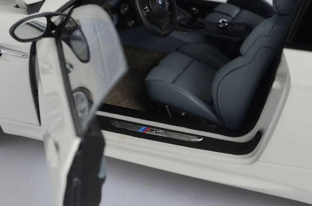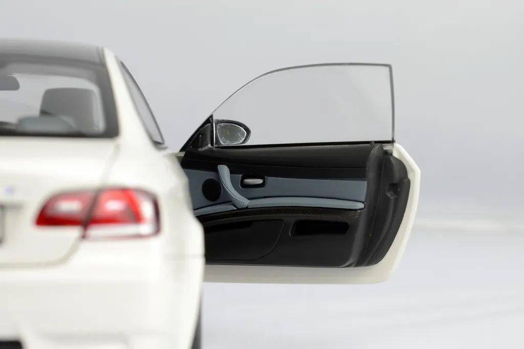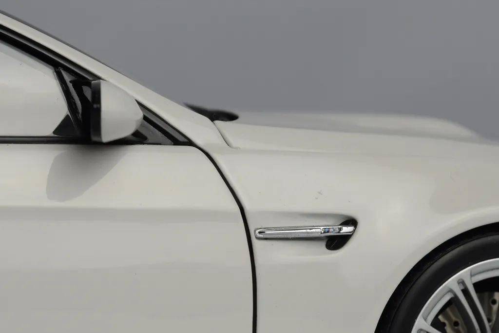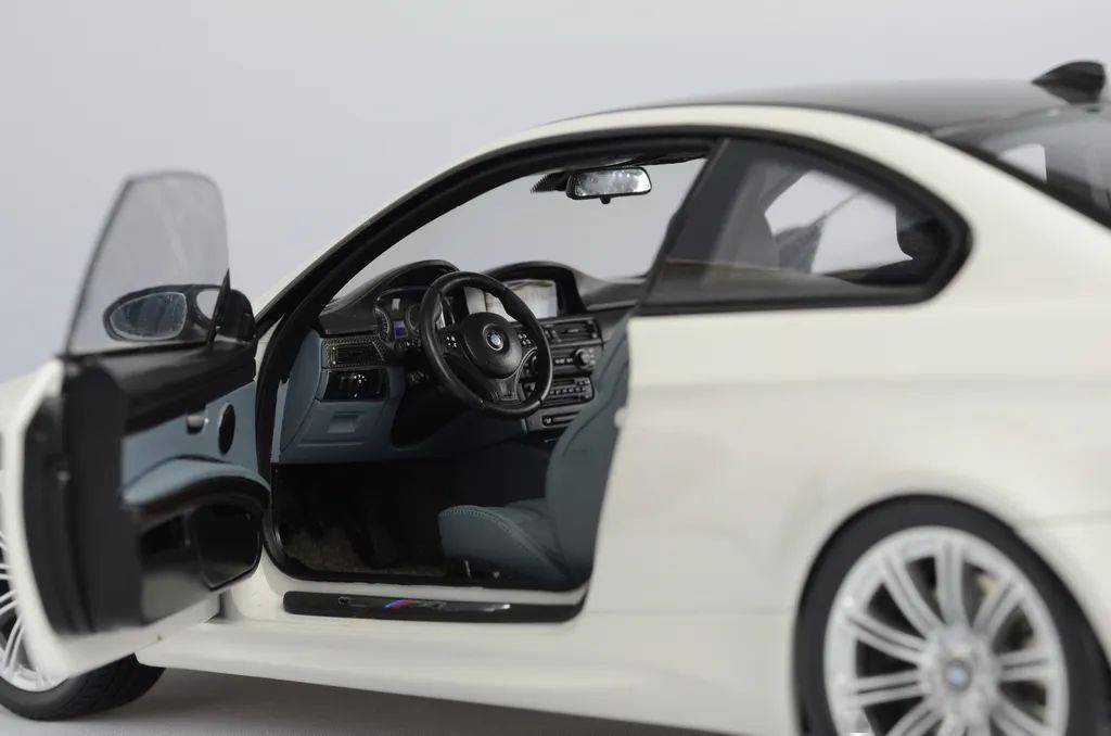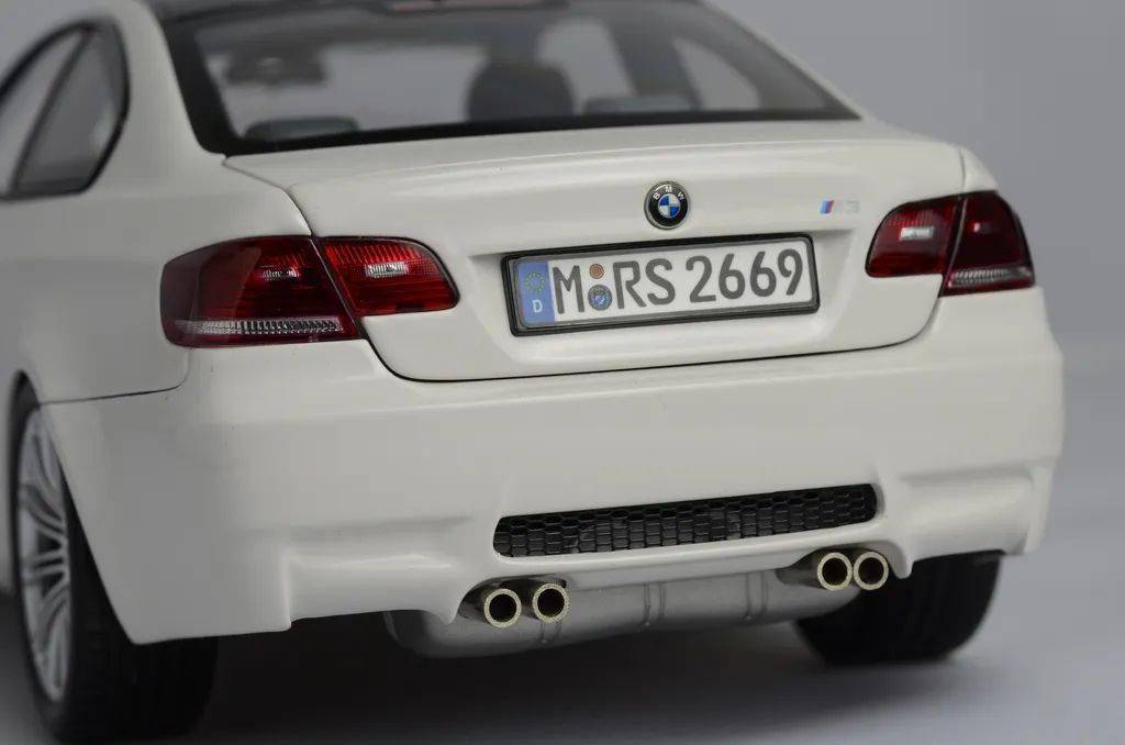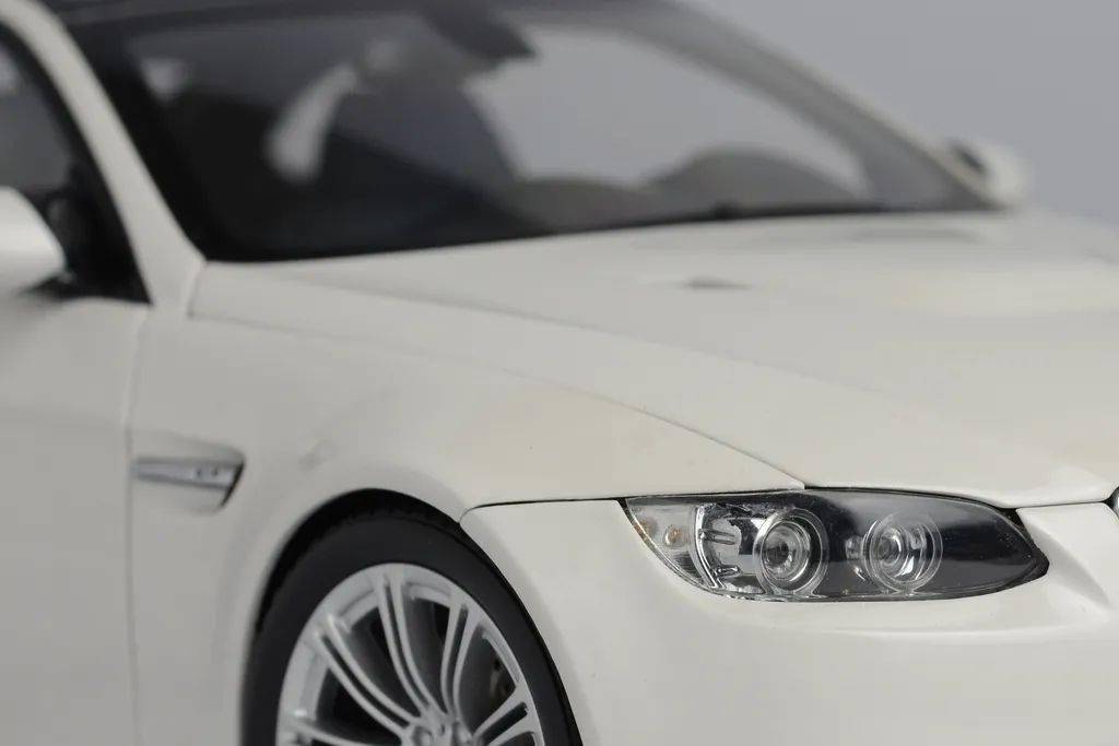 这次测评的车模是京商复刻的BMW M3 E92模型,这款模型也算是京商较为经典的车模了,当年整体做工在1/18领域算是相当优秀的,因此在很长的一段时间二手价格不断上涨,最高的时候到达2K+,而现在海鲜市场也有一些玩家标注早期版本的京商M3 E92,价格也维持在2K的水准,但估计实际成交的可能性不大,而更多的则是后期复刻的产品,价格低至300-,可谓从海景沦为白菜,笔者这一台收入价就是不到300,对于单一个模型来说,这么低的价格收到肯定是开心的,但对于整个模型圈或者京商这个品牌,则是无益的,因为你不知道自己手里的模型,那天也会沦为白菜。造成海景变白菜现象主要有两个原因,一是毫无底线地复刻,二是整体品质的崩塌。无底线地复刻导致大量的库存,关于品质崩塌,笔者也请出了早期的白色的M3 E92(老照片),看看有多大的差距。