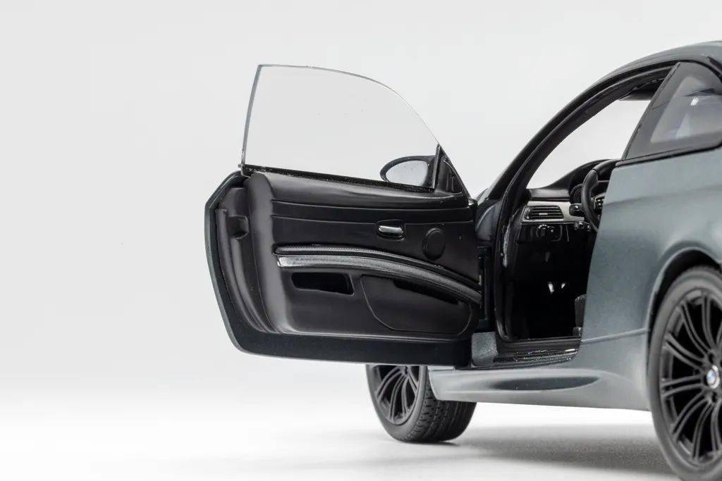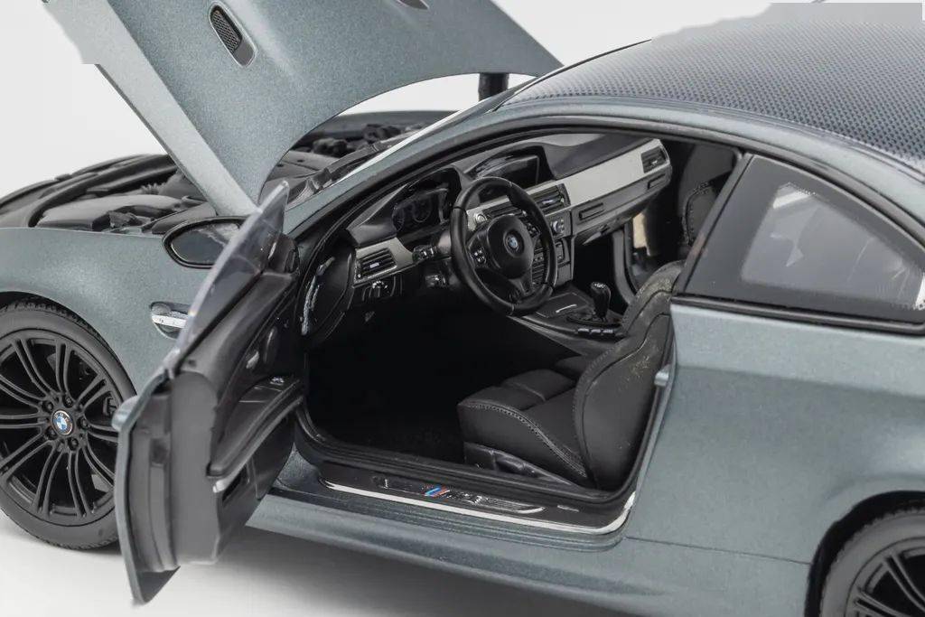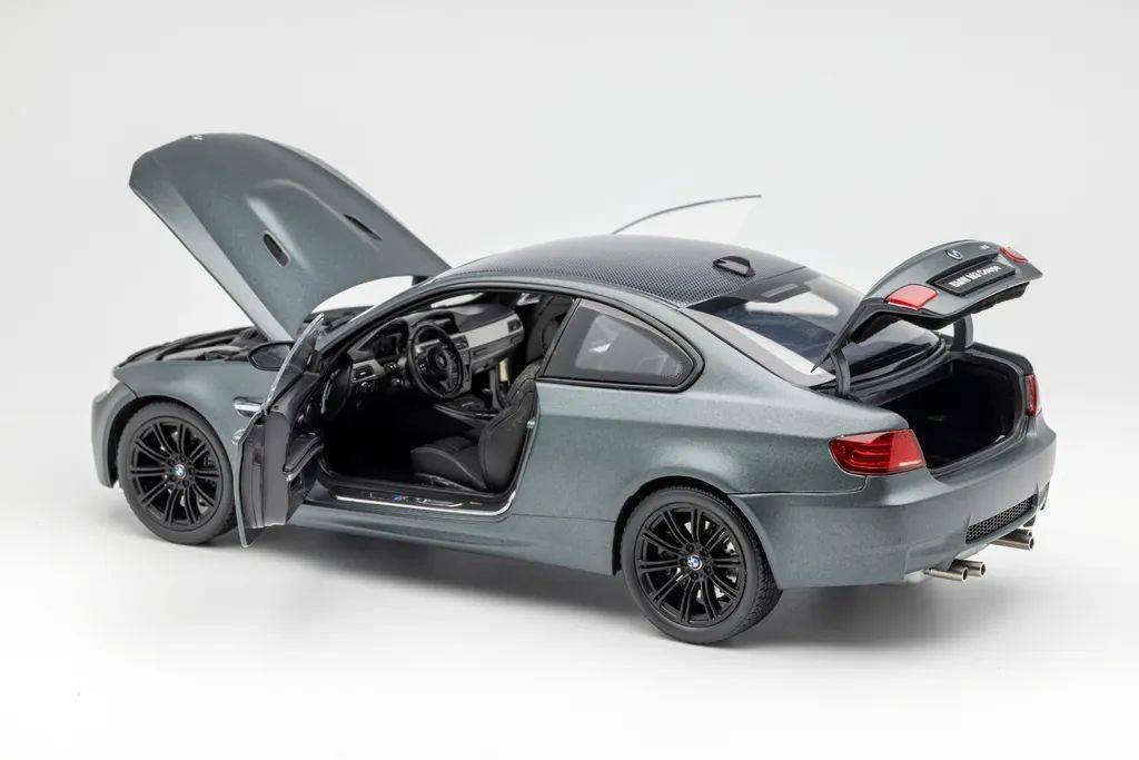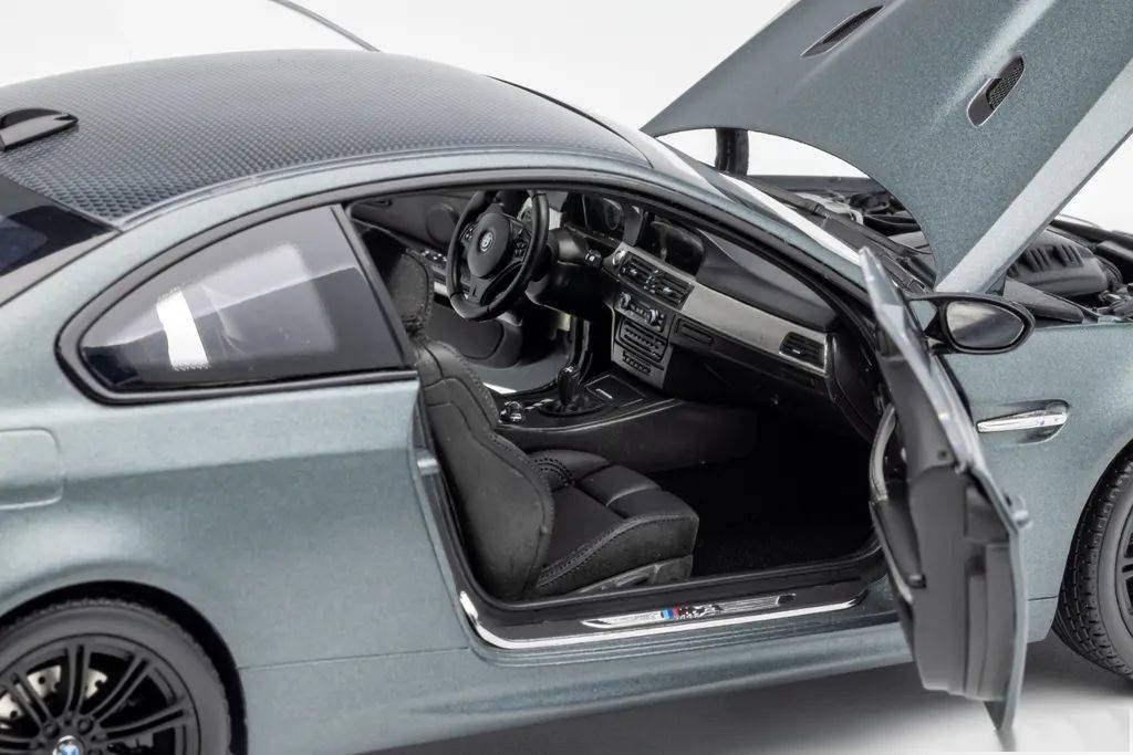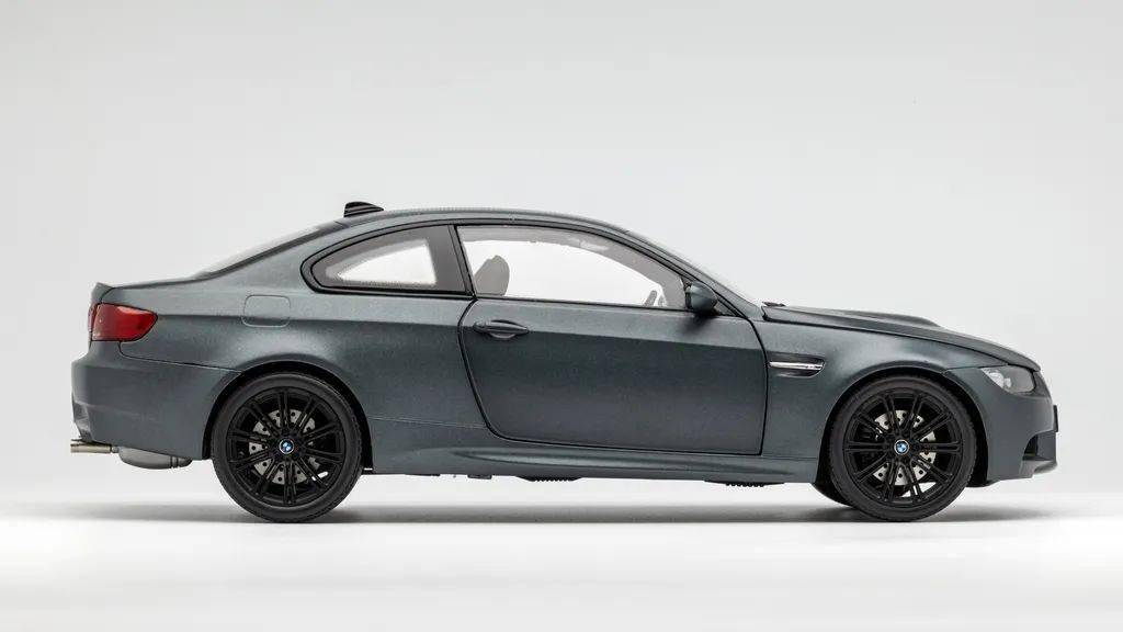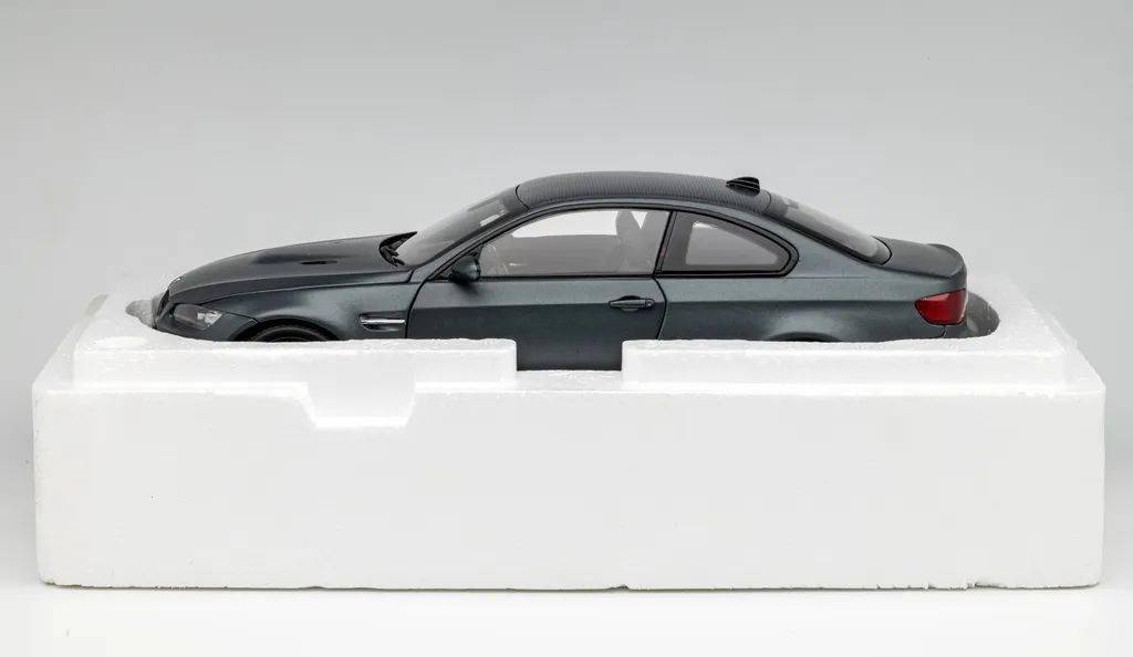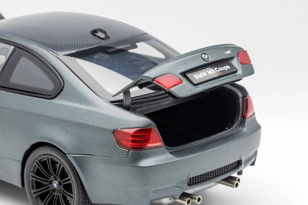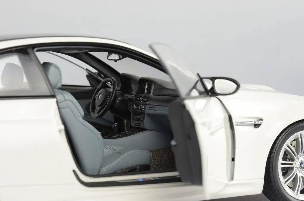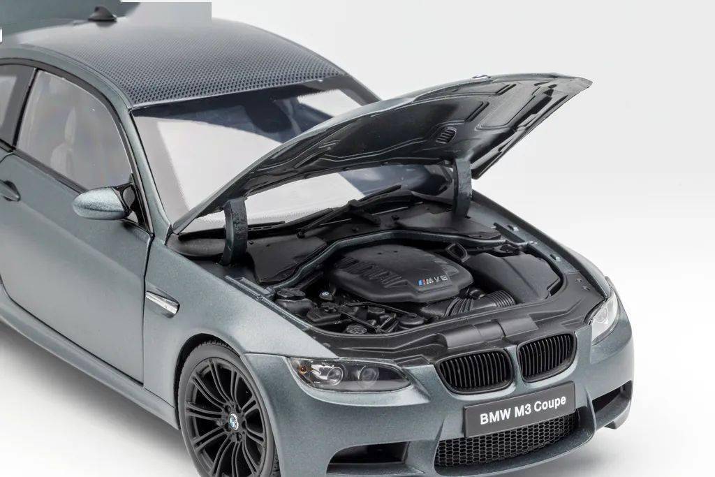 这次测评的车模是京商复刻的BMW M3 E92模型,这款模型也算是京商较为经典的车模了,当年整体做工在1/18领域算是相当优秀的,因此在很长的一段时间二手价格不断上涨,最高的时候到达2K+,而现在海鲜市场也有一些玩家标注早期版本的京商M3 E92,价格也维持在2K的水准,但估计实际成交的可能性不大,而更多的则是后期复刻的产品,价格低至300-,可谓从海景沦为白菜,笔者这一台收入价就是不到300,对于单一个模型来说,这么低的价格收到肯定是开心的,但对于整个模型圈或者京商这个品牌,则是无益的,因为你不知道自己手里的模型,那天也会沦为白菜。造成海景变白菜现象主要有两个原因,一是毫无底线地复刻,二是整体品质的崩塌。无底线地复刻导致大量的库存,关于品质崩塌,笔者也请出了早期的白色的M3 E92(老照片),看看有多大的差距。