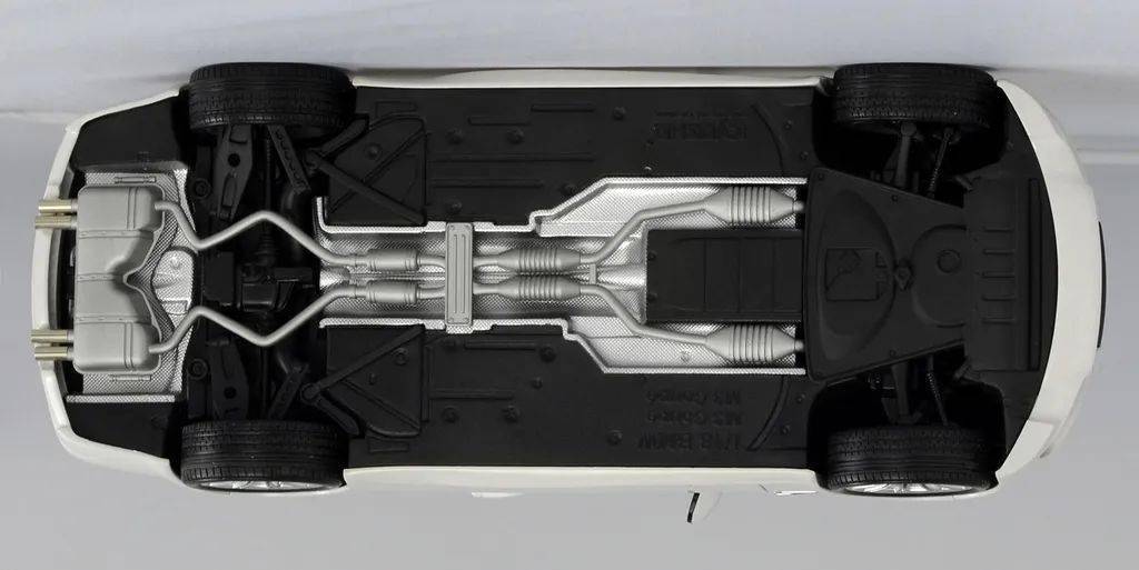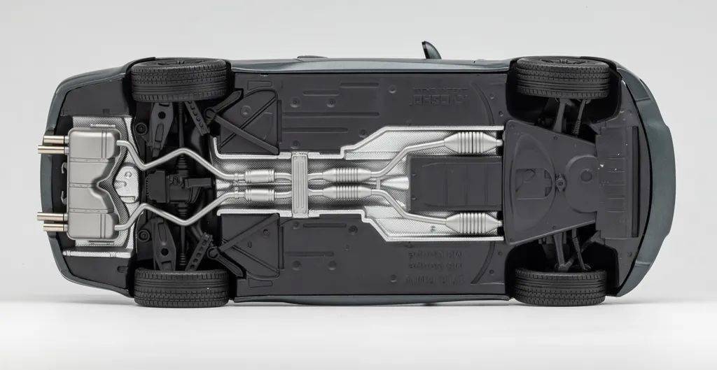 复刻版和原版的底盘是完全一样的,整体为浮雕刻画,排气系统是独立件,排气管末段貌似采用了金属材质。