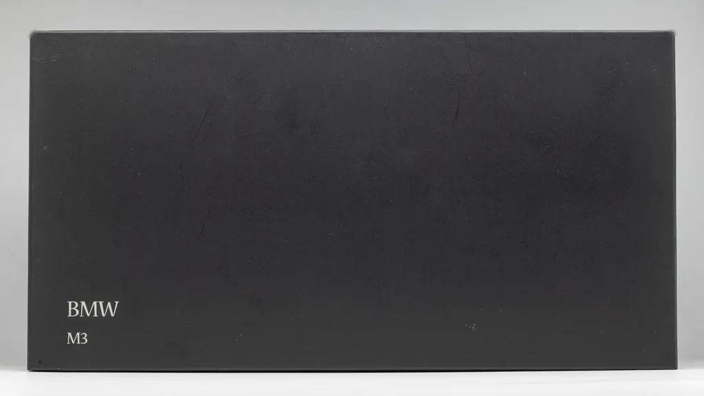 这次试玩的复刻产品包装为原厂的全黑包装纸盒,只有边角位置有BMW M3标志;纸盒内里的泡沫塑料包裹也很到位,而且不需要上螺丝,当然为避免暴力快递损坏车模,寄运时还是稍微加强点好;当年因为没有拍原版的包装的照片,因此也无从考究,估计也差不多。