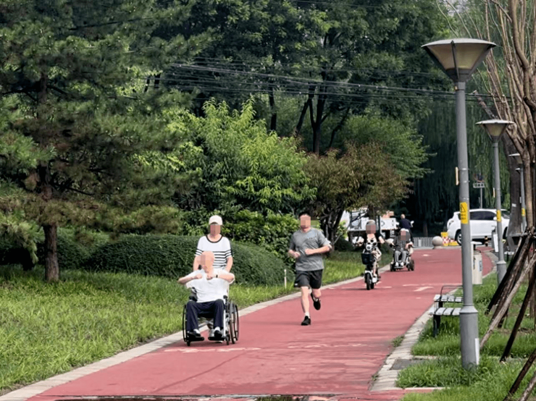 王志勇表示,市民在公园内步行,有多种方式可供选择。在控制骑行者速度的同时,也建议市民选择公园小路或沿河景观步道通行。