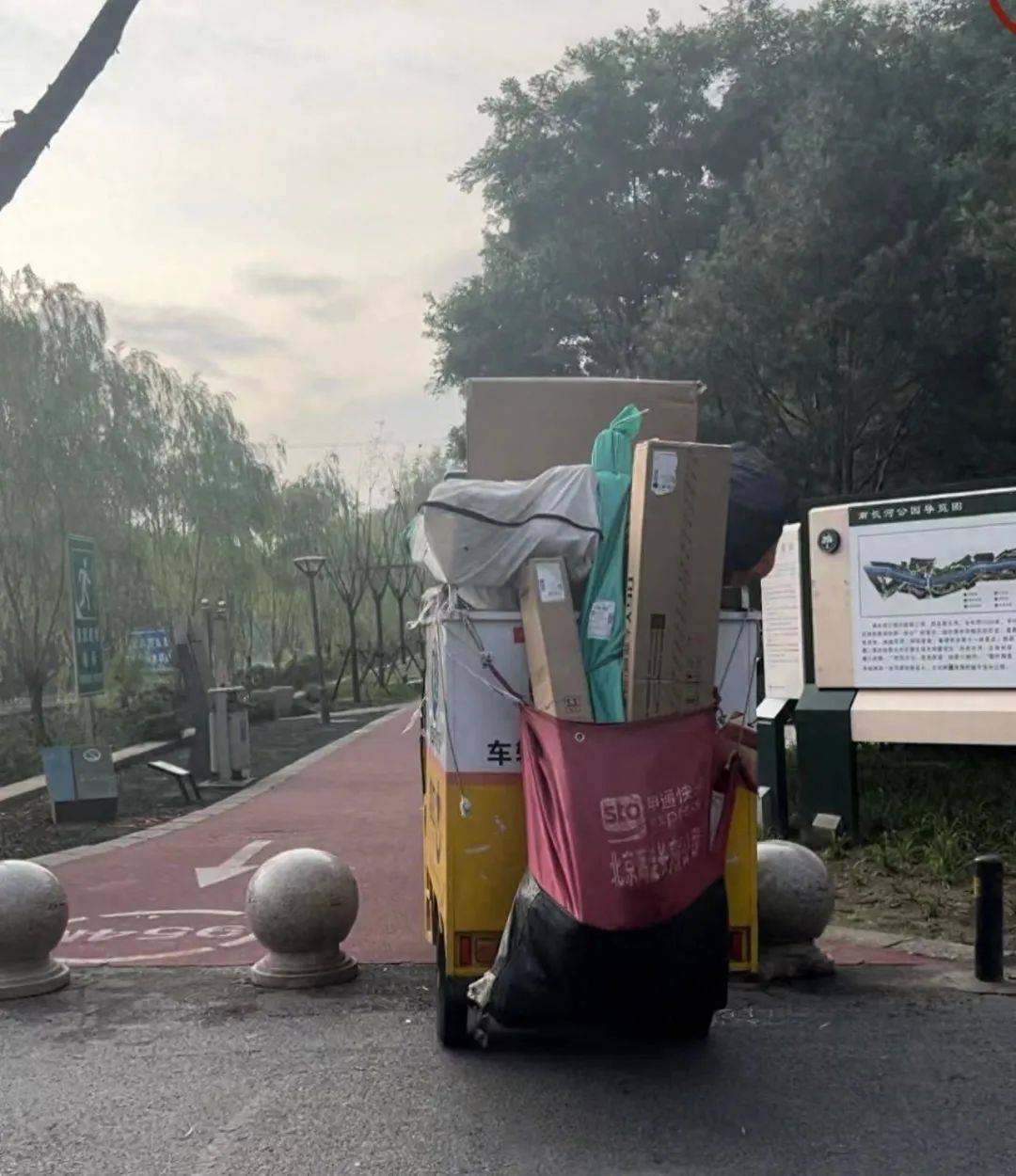 早上七点半,南长河公园内的骑行绿道上,不仅有散步遛弯的老人孩子,骑行的市民,期间还不时有匆匆驶过的三轮快递车,两轮摩托车。市民们说: