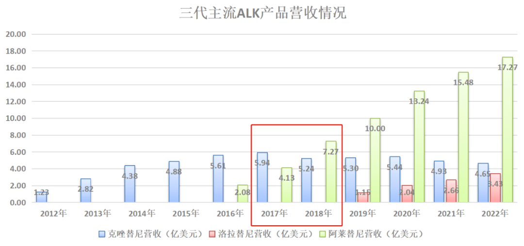 图:三代主流ALK产品营收情况,来源:锦缎研究院