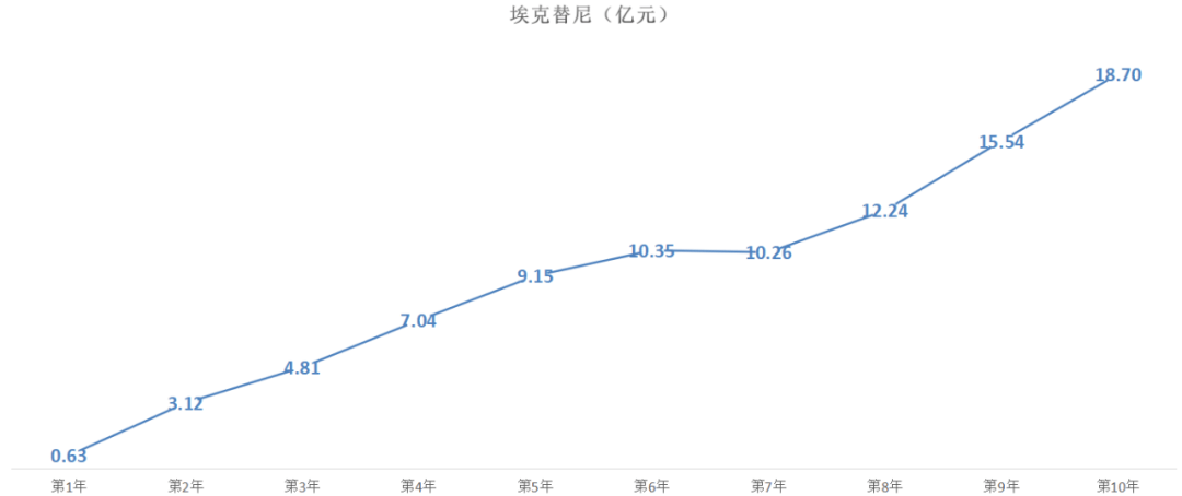 图:埃克替尼营收趋势,来源:锦缎研究院