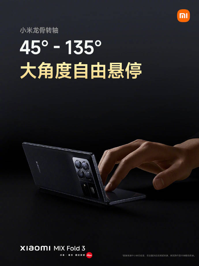 优点二、45-135°大角度自由悬停。小米这一代将上一代所舍弃的悬停折叠重新找了回来,MIX Fold 3支持45-135°大角度自由悬停,不管是进行多少角度的折叠,折痕都非常明显地减轻,官方测试20万次折叠后折痕变化仅有10μm。另外龙骨转轴采用了内屏环绕式保护,当不小心摔落时候也不会产生形变,抗摔耐磨,随心开合。