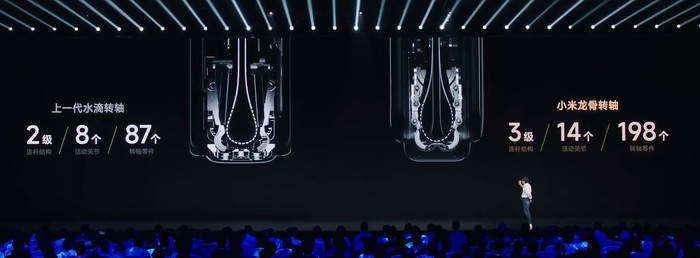 小米MIX Fold 3发布会上最亮眼的便是首发的“龙骨转轴”,雷军在发布会上就指出:这是一项跨时代的转轴设计,是一项重大突破技术,它以14个活动关节带来全新前所未有的屏幕保护力。
