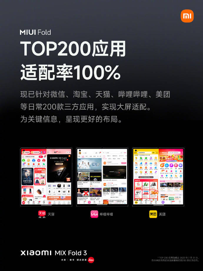 这一次MIUI系统与200个头部应用进行了100%适配,让用户在日常的使用感受中都可以体验大屏幕带来的完整体验。除了这些应用外,针对一些银行App等冷门应用,小米MIX Fold 3还有着自适应引擎,布局合理,可以在手机上展示更多有效信息,防止App的暴力拉伸。
