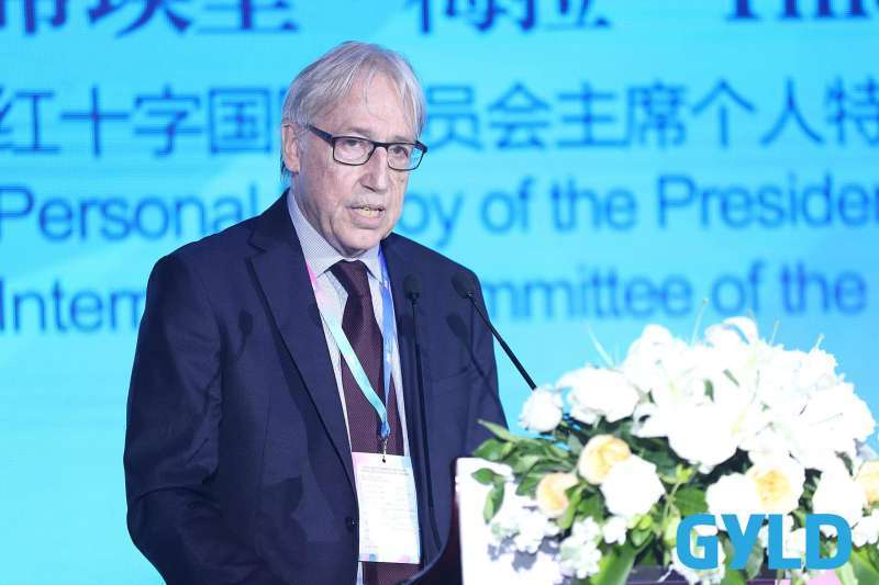 8月12日,红十字国际委员会主席中国事务个人特使蒂埃里·梅拉在“国际青年领袖对话”年度论坛上发表演讲。CCG供图