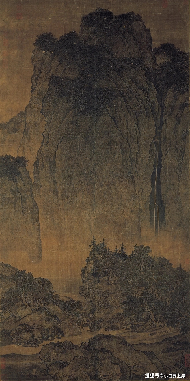 (1)中国画采用散点透视(多点透视),即画家的观察点不是固定在一个地方,也不受视域的限制,而是根据需要,移动着立足点进行观察,不同立足点上所看到的东西都可以组织进同一幅画。例如在山水取景构图上,郭熙总结了此前的透视经验,提出了影响深远的“三远”法。