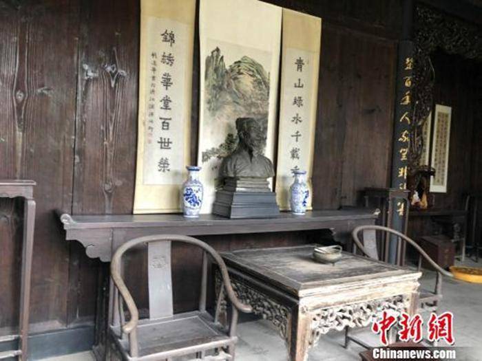 资料图:在吴承恩故居客厅,展示着吴承恩的一尊头像。徐珊珊 摄