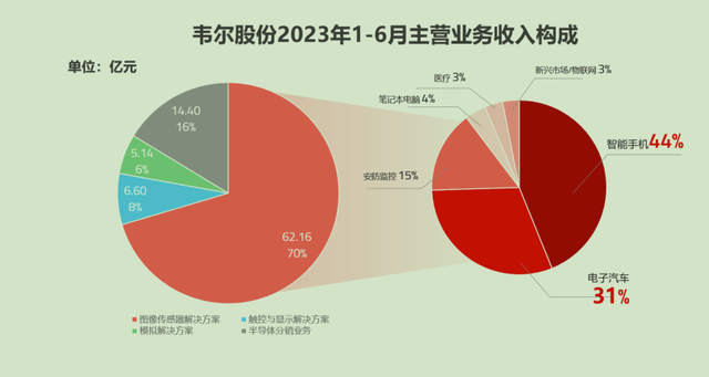资料显示:韦尔股份一直从事半导体产品设计业务和半导体产品分销业务。其中,韦尔股份的半导体产品设计业务主要由图像传感器解决方案、触控与显示解决方案和模拟解决方案三大业务体系构成。