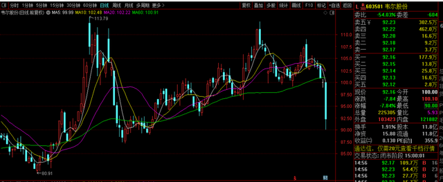 8月15日,韦尔股份盘中一度触及跌停,截止收盘,韦尔股份依然跌7.8%,股价报于92.16元,总市值1090亿。