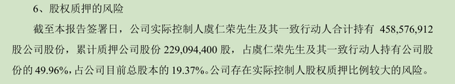 值得一提的是,韦尔股份的实际控制人虞仁荣及其一致行动人合计持有4.59亿股公司股份,累计质押公司股份2.29亿股,占虞仁荣及其一致行动人持有公司股份的49.96%,占公司目前总股本的19.37%。去年同期,虞仁荣及其一致行动人质押股份比例只有39.67%,也就是说一年时间质押比例又上升了10个百分点。