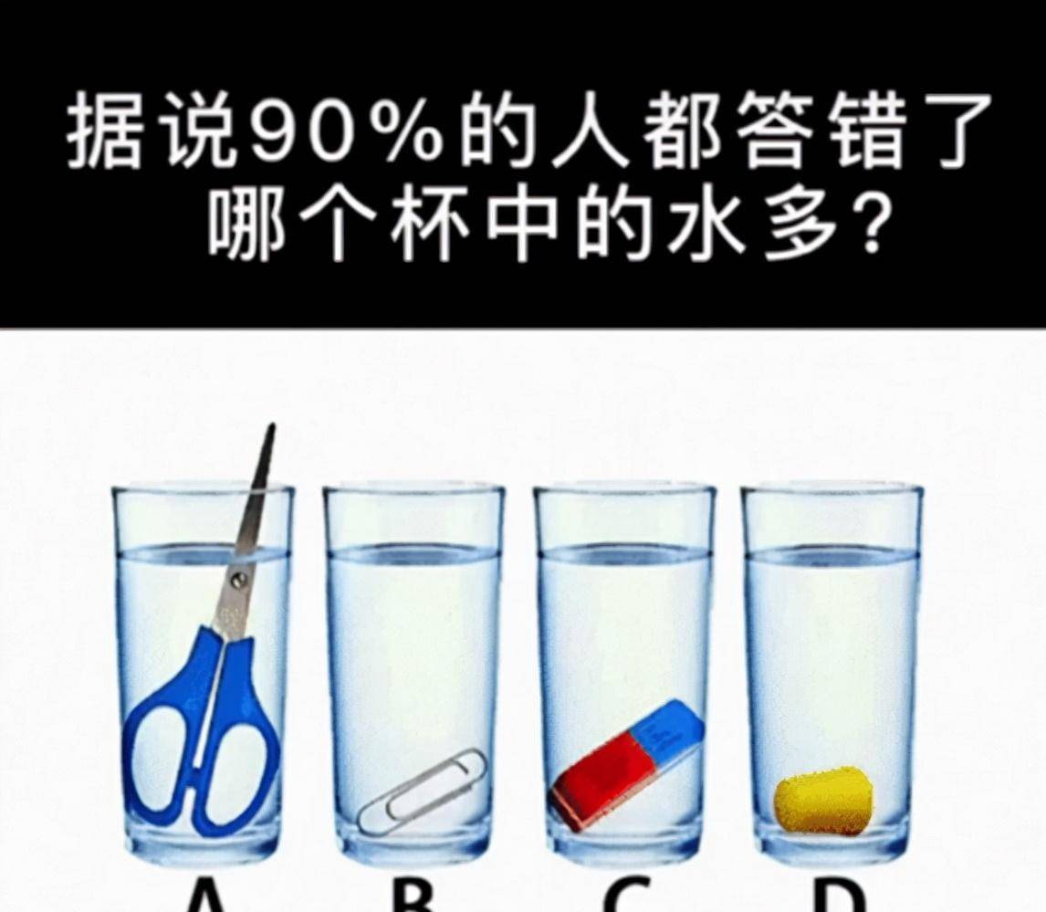 据说只有10%的人能答对这道题。哪个杯子盛的水多?