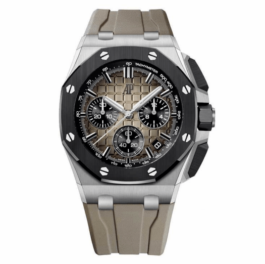名表巡礼3:这是一只爱彼皇家橡树离岸型系列26420SO.OO.A600CA.01腕表,这只腕表搭载自动机械机芯,表壳为精钢材质,橡胶表带,具有日期显示、计时和飞返/逆跳功能,表径43毫米,防水100米。