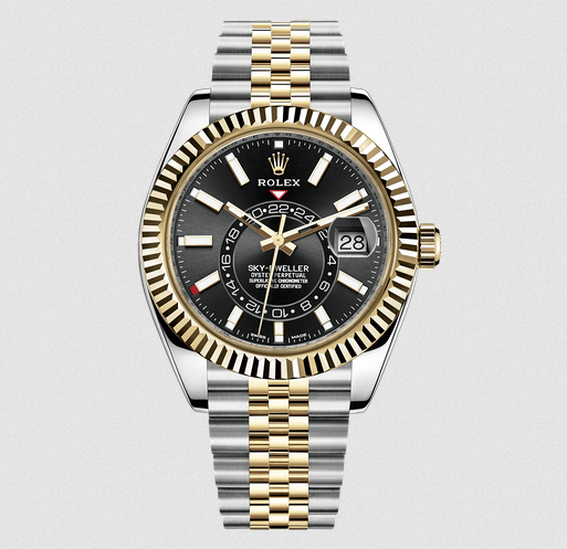 名表巡礼1:这是一只劳力士纵航者型系列m326933-0005腕表,这只腕表搭载自动机械机芯,表壳为黄金钢材质,具有日期显示、月份显示、年历显示和双时区功能,表径42毫米,防水100米。