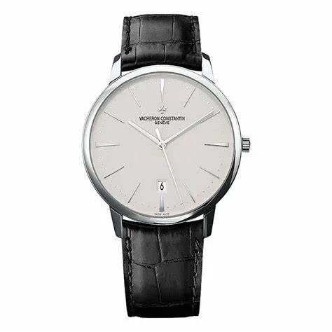 名表巡礼2:这是一只江诗丹顿传承系列85180/000G-9230腕表,这只腕表搭载自动机械机芯,且机芯上有日内瓦印记,表壳为18k白金材质,密西西比鳄鱼皮表带,具有日期显示功能,表径40毫米,防水30米。