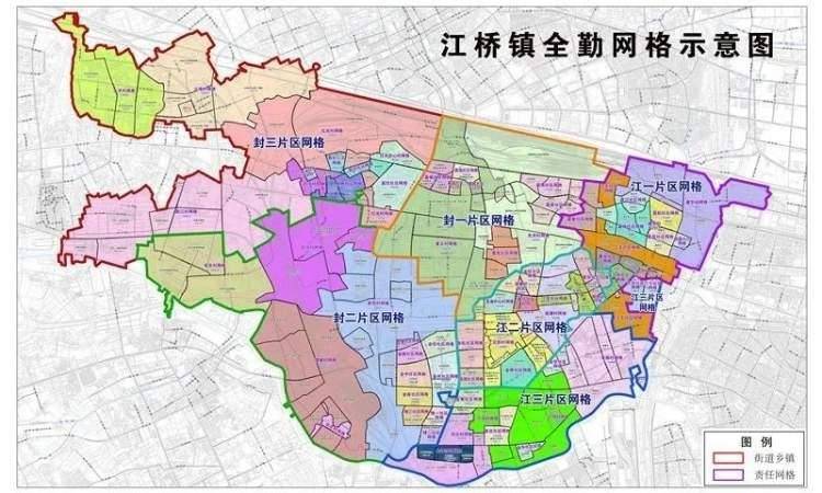 江桥镇实有人口近33万人,村居(含筹建组)63个,小区121个,数量均为全区第一,地域广、人口多,给社会面治理管控带来巨大挑战;镇域内商业综合体5个、各类市场21家、商铺近3300家,区域发展不平衡,问题回潮反复情况较为普遍。为全力推进网格化建设各项工作,江桥镇将全域分为6大片区网格、“59+2”个村居网格(其中2个为社区筹建组)和172个小微网格,厘清管理边界,明确职责分工,探索社会治理“路长负责制”管控新模式,初步完成了“横到边、纵到底、全覆盖、无缝隙”的城运五级体系搭建。