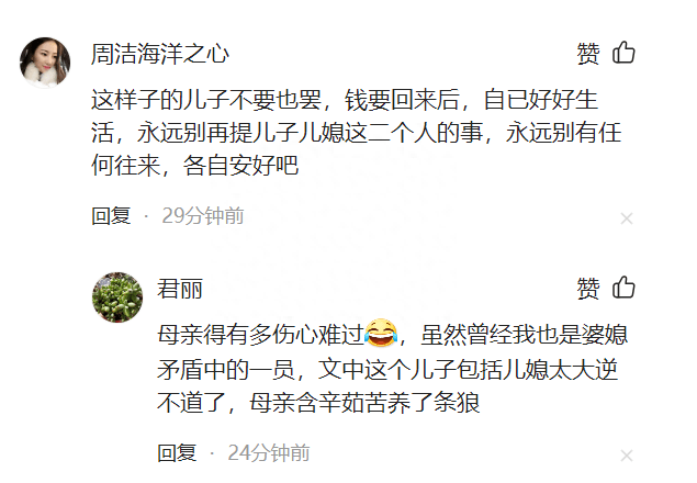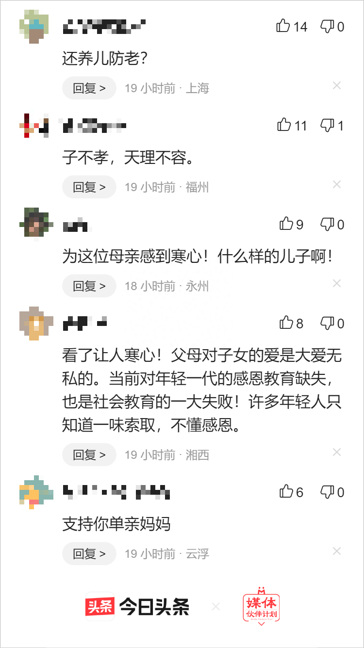 此事在网友中引发热烈讨论,不少网友大骂这位儿子“白眼狼”,认为他的行为太令人寒心,“子不孝,天理不容”,支持母亲追回房款。