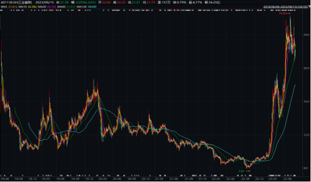 收益于AI市场的火热,表现在二级市场上,今年以来工业富联迎来了一波股价上涨行情。据Wind数据显示,从年初至今,该公司股价最高涨到了26.60元/股。此后该股稍有回落,截至8月15日收盘,公司股价收于21.39元/股,当前总市值为4249.43亿元。